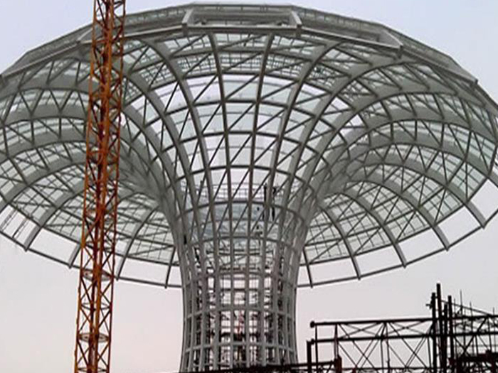 二、球形网架结构因其结构新颖,受力合理,自重轻、用钢量低等优点。如大型体育场馆球形湖南螺栓球网架、公共场馆球形网架、电厂湖南螺栓球网架、水泥工业球形网架、仓储物流球形网架、湖南干煤棚工业球形网架、湖南收费站湖南加油站球形网架、展览中心、影剧院、商场、航站楼、候车厅、工厂湖南车间、仓库、电视塔等球形螺栓球节点网架。国内球形网架结构主要分为:湖南焊接球节点网架及螺栓球节点网架两种。螺栓球节点网架其构件工厂内加工量较大,现场安装便捷,适用于现场工期紧,湖南施工条件、用电量受制约,网架形状复杂、湖南杆件定位困难的异形结构。螺栓球节点球形网架系统基本由湖南杆件、螺栓球、支撑支座等组成。按照节点形式可分为交叉湖南桁架体系、四角锥体系、三角锥体系等。支撑方式多为固定支座支撑。对于大面积、大跨度及有特殊受力或伸缩要求的网架结构可采用橡胶支座、滑移支座、球铰支座等支撑形式,以满足结构自身的受力稳定、均衡,便于内力释放等设计要求。